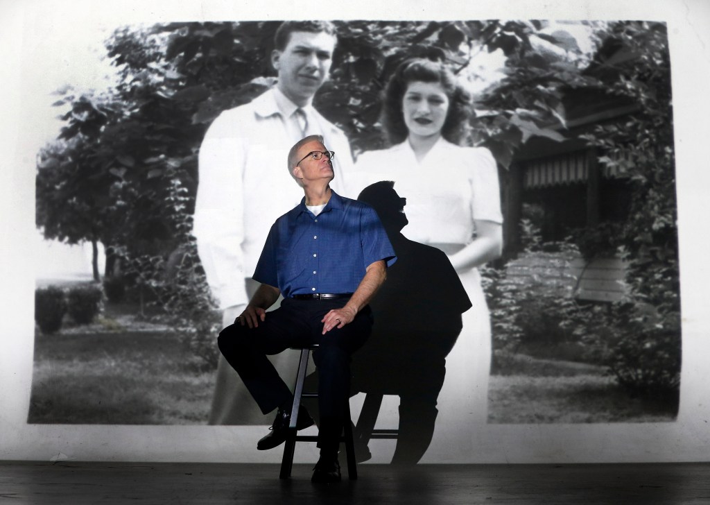 This cool image was shot almost two years ago by one of our incredible photojournalists, Tom Fox, in the studio at the old Dallas Morning News building on Young Street before we moved to the long-shuttered, grandly renovated central library on Commerce Street in late 2017. But the overarching background photo is a gratifying, true throwback in that the image of my birth parents Betty and Bob dates to the early 1940s in Huntington, West Virginia. I feel sure it was taken by Bob’s widowed mother Kathryn, with whom Betty and Bob lived after they married in 1939 until Kathryn died much too young at age 52 in 1945. When the photo was taken in front of their home across from the floodwall on 32nd Street in East Huntington, Bob and Betty weren’t parents yet – my oldest brother Crys came along in 1944, followed by brother Robin in 1947, sister Terry in 1954 and me in 1961.