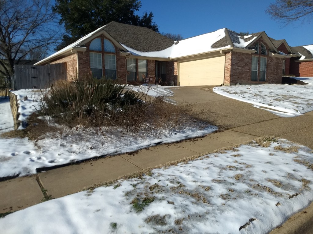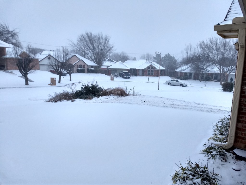 One thing I’ll say about this week is that the snow was beautiful. After all, we rarely get any around here. About 3 inches or so fell on our place Sunday, and then we got more Tuesday night/Wednesday morning. Because it was so cold, it didn’t melt all week — and I can’t remember ever having snow on the ground this long since moving to D-FW in 1987 to work for the Fort Worth Star-Telegram.