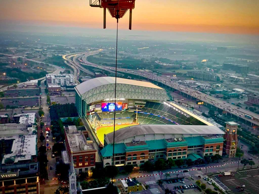 Sharing this cool photo from the Blessed To Be An Astros’ Fan Facebook group, where over 43K fans incessantly post their devotion to the team. The poster says the shot was taken early this (Tuesday) morning, 12ish hours from first pitch in Game 6 of the World Series between the Astros and Braves, who lead the series 3-2. The Astros, back home at Minute Maid Park in Houston, are attempting to rally from a 3-1 deficit to win their second championship, a comeback that doesn’t happen often.
