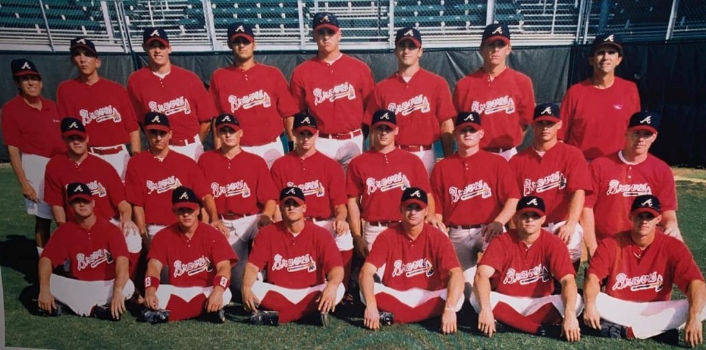 Aaron Adair — back row left next to his dad, Coach Steve Adair — hit a blistering .592 for the season in 1994 when he was 14 years old as the Dallas Braves compiled a remarkable 67-2 record and won the Sandy Koufax World Series.