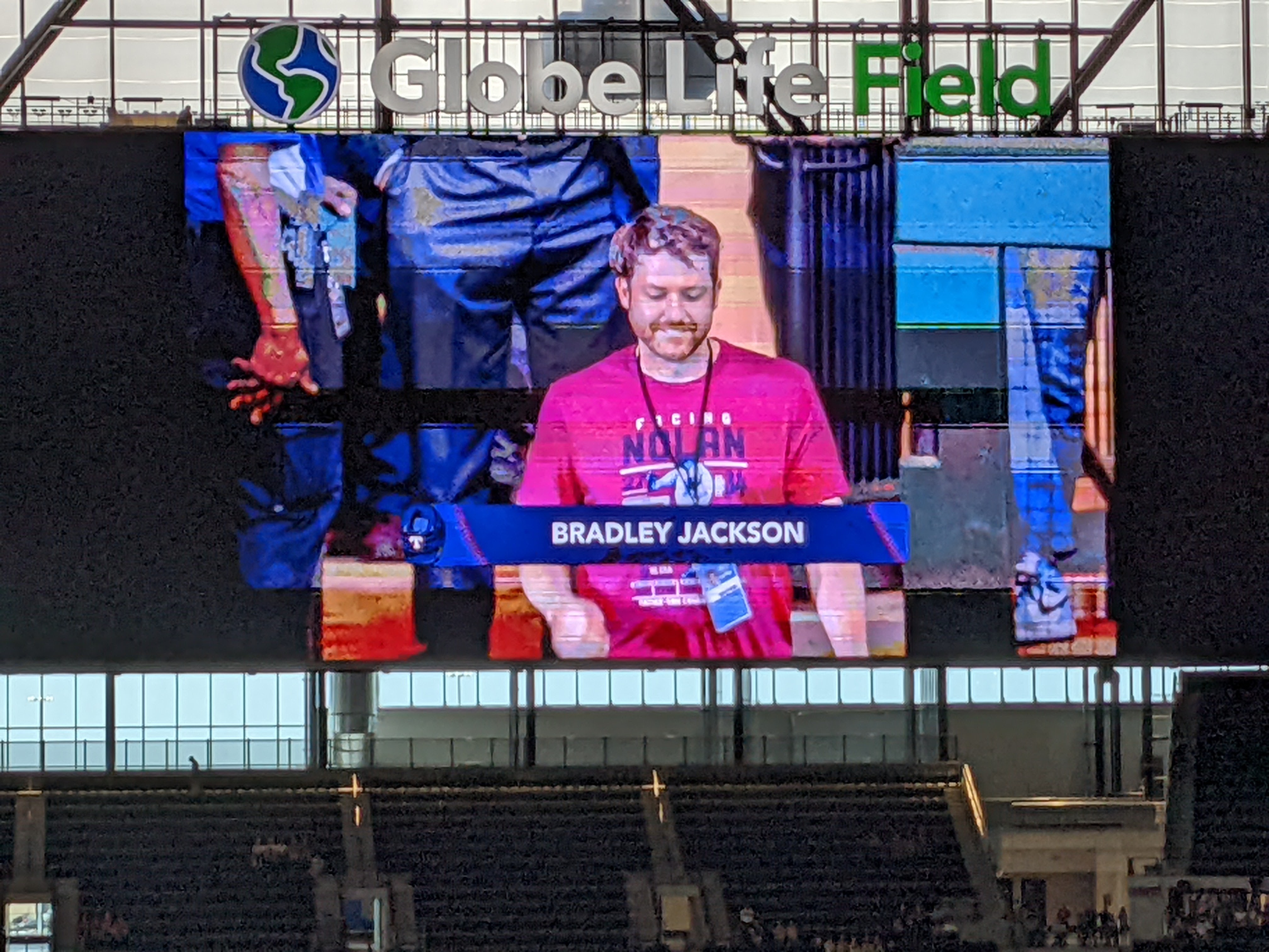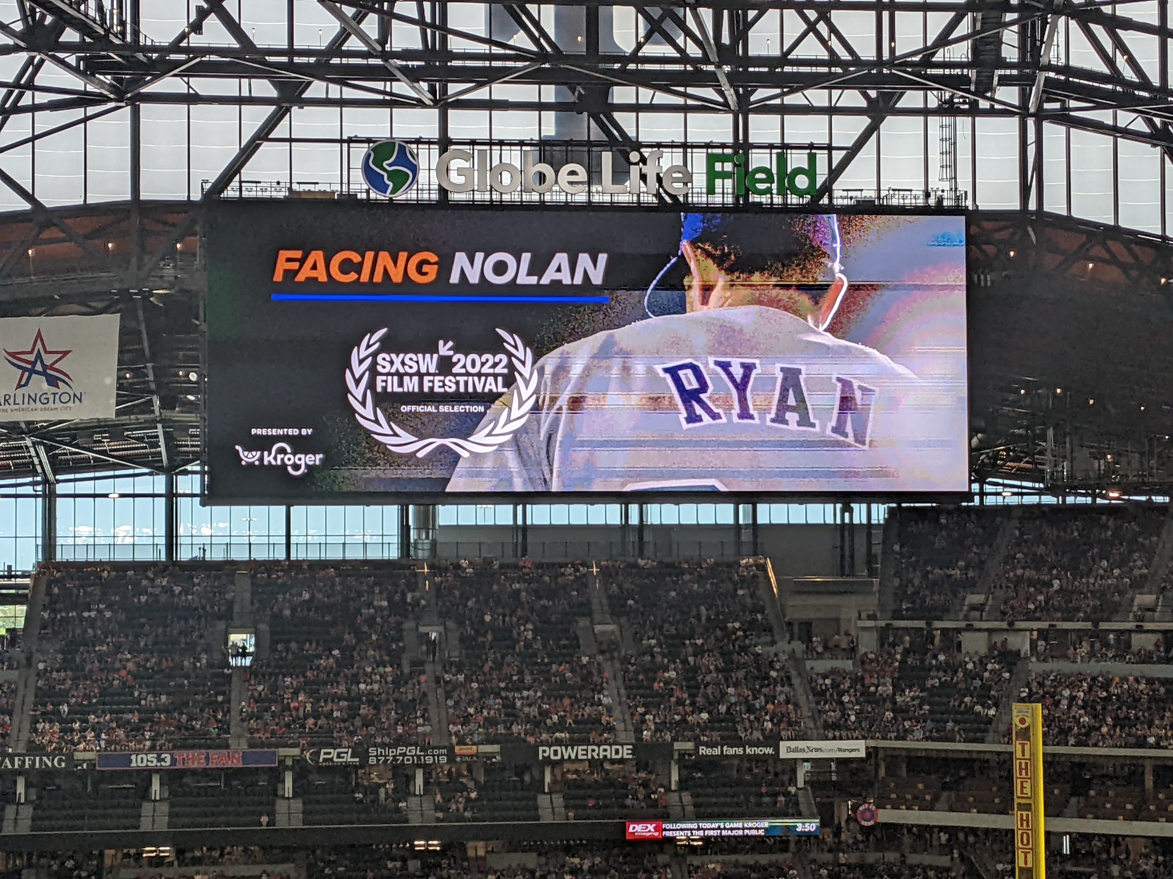 I’d generously estimate 1,500 to 2,000 stuck around to see Nolan and the documentary, shown on the stadium’s two huge scoreboards in right field and along the deep left-field line. I felt bad for the Ryan family. The tens of thousands who went home missed something truly special. The film is exceptionally well-done, with great interviews, video, photos, and stories most people probably don’t know. There’s not a piece of it that loses your interest.