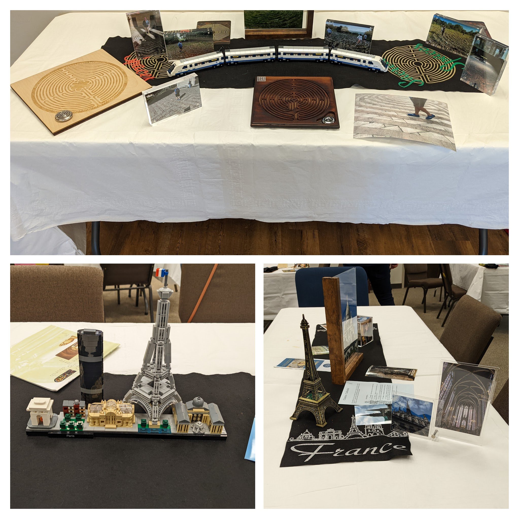 In a perfect touch, the family also decorated every table in the sanctuary with themes of the various places they visited — Paris, Copenhagen, Stockholm and lots of others — with magnifique photos, brochures and other mementos, adding special pieces such as a Lego Eiffel Tower, Arc de Triomphe and churches in the City of Light.
