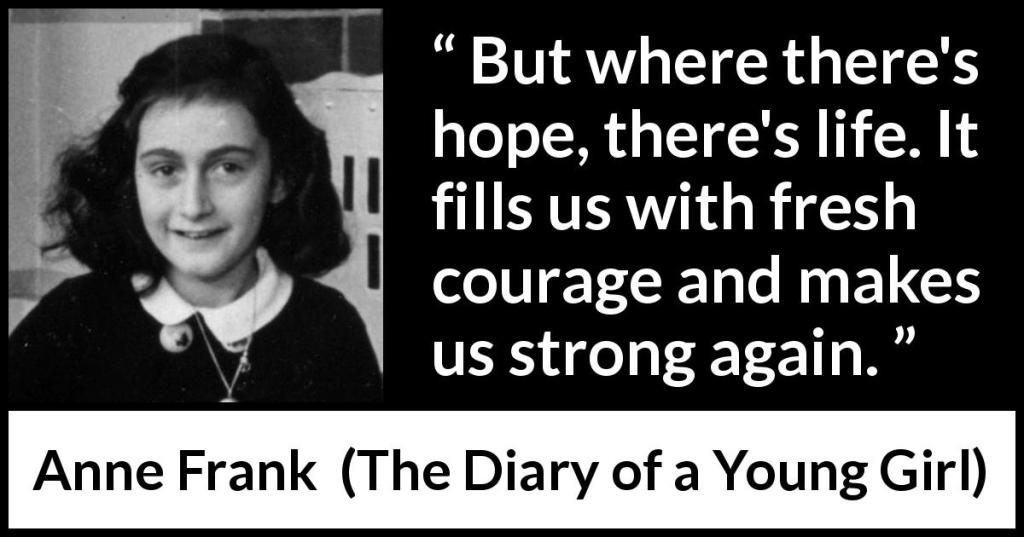 Like you, I haven’t read her whole book. It was assigned in high school, but through three years of high school I was going through some psychological trauma and my mother became alcoholic. I skipped a lot of school. I should have been in counseling. That waited until I was a freshman at St. Petersburg Jr. College (now, St. Petersburg College), and was waiting tables. I paid for my own counseling with tips. I went way off course, here, but wow, reading your post brought me back home. My home was broken, but not nearly as horribly as her situation. I agree; she was wise beyond her years. Nazis took away many talented people, but losing Anne Frank was a huge loss. Hmm, I just realized something. The name of my first counselor was Richard Frank. He, also, was Jewish.