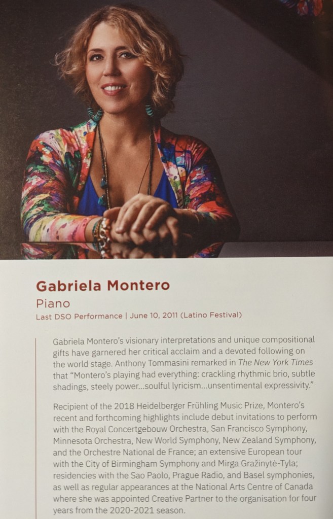 Gabriela, who has played with many of the world’s leading orchestras, performed the “Latin” concerto, which she composed in 2019. It was 30 minutes of virtuosity and absolute grace from one end of the keyboard to the other, and she and the orchestra — again, with sparse rehearsal time — gelled beautifully. How touring piano soloists play with so many orchestras and all the musicians manage to stay in sync throughout a concerto is truly remarkable. But after all, they are the best at what they do.