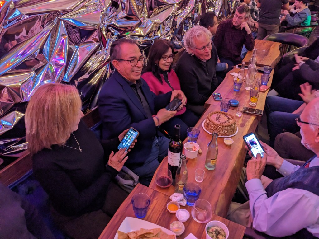 Thursday’s shindig featured generations of Dallas Morning News faces ranging in age from 20s to 70s, including the man who brought Freddy to the paper, former editor Bob Mong, now president of the University of North Texas at Dallas. Keith, the longtime DMN’er who now lives with wife Sara outside Asheville, North Carolina, even flew in to help fete Freddy – and the Campbells will be traveling to California in about a week to meet and spend time with their new grandson, whose mom is the Campbells’ daughter Emily.