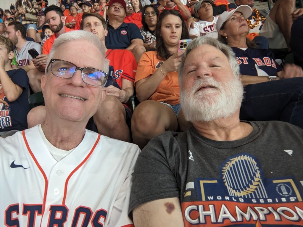 I’ve had a lot of highlights in my life, and one of them involves Paul. Despite his affinity for the Astros, he had never been to one of the team’s playoff games – until last year. My college friend Gerald had two extra tickets to Game 1 of the ALDS against Minnesota, and he offered them to me and our A&M buddy Bobby, but he was going to be out of town.