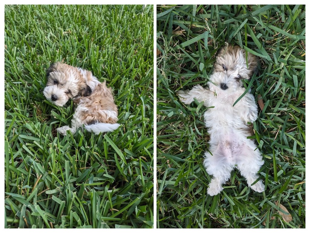 It’s been so cute to see Archie in our backyard, running, hopping and rolling around, practically getting lost in the St. Augustine grass. He’s already been doing a great job knowing where to pee and poop, although he’s had a few accidents and we know that’ll take training. We have soft ramps leading out and in through our “doggie window” and we thought that as small as Archie is, it would take him a while to master getting through it. But with a little coaching — and smarts, which we can see he has in spades — he’s figured it out!