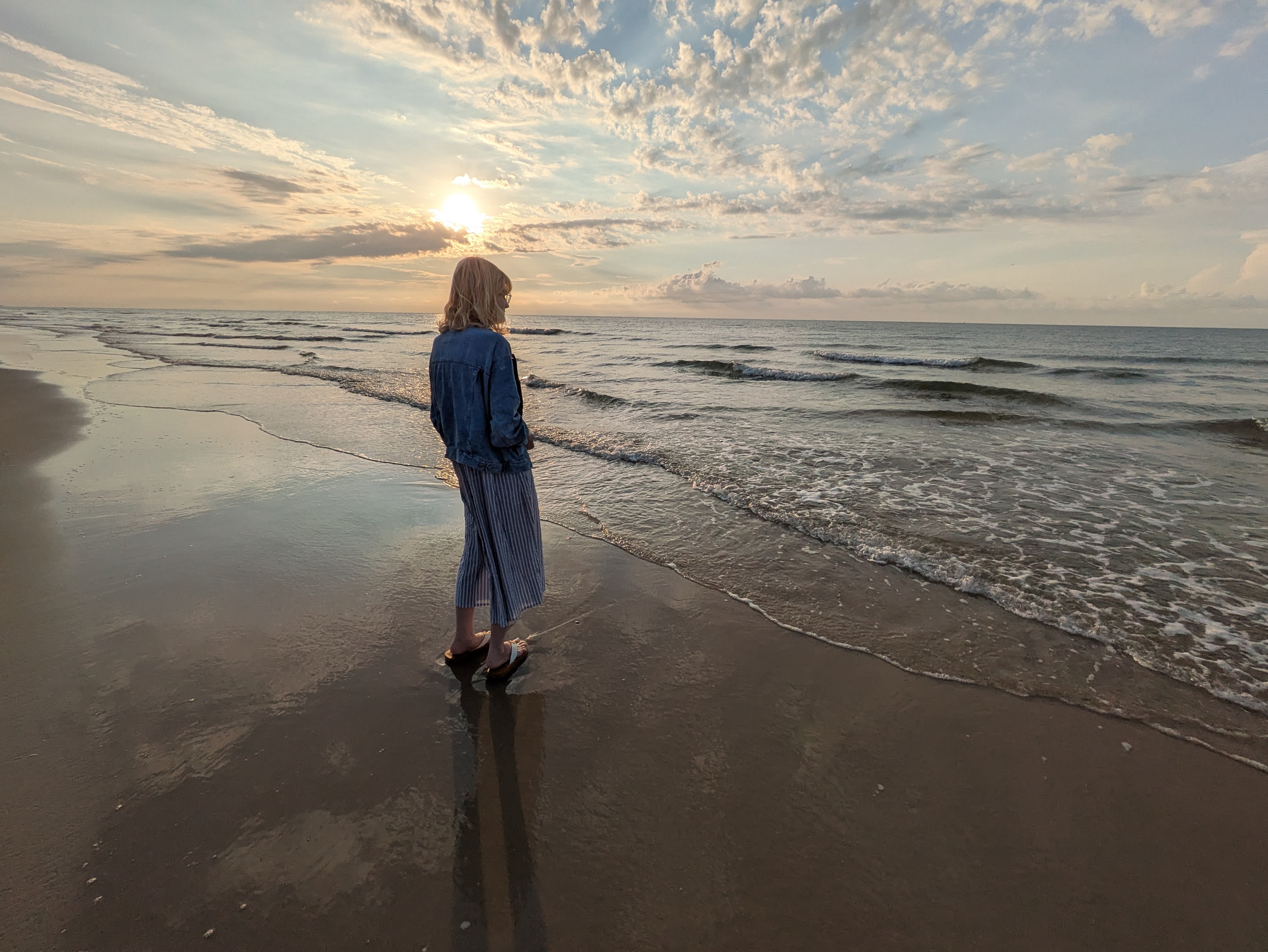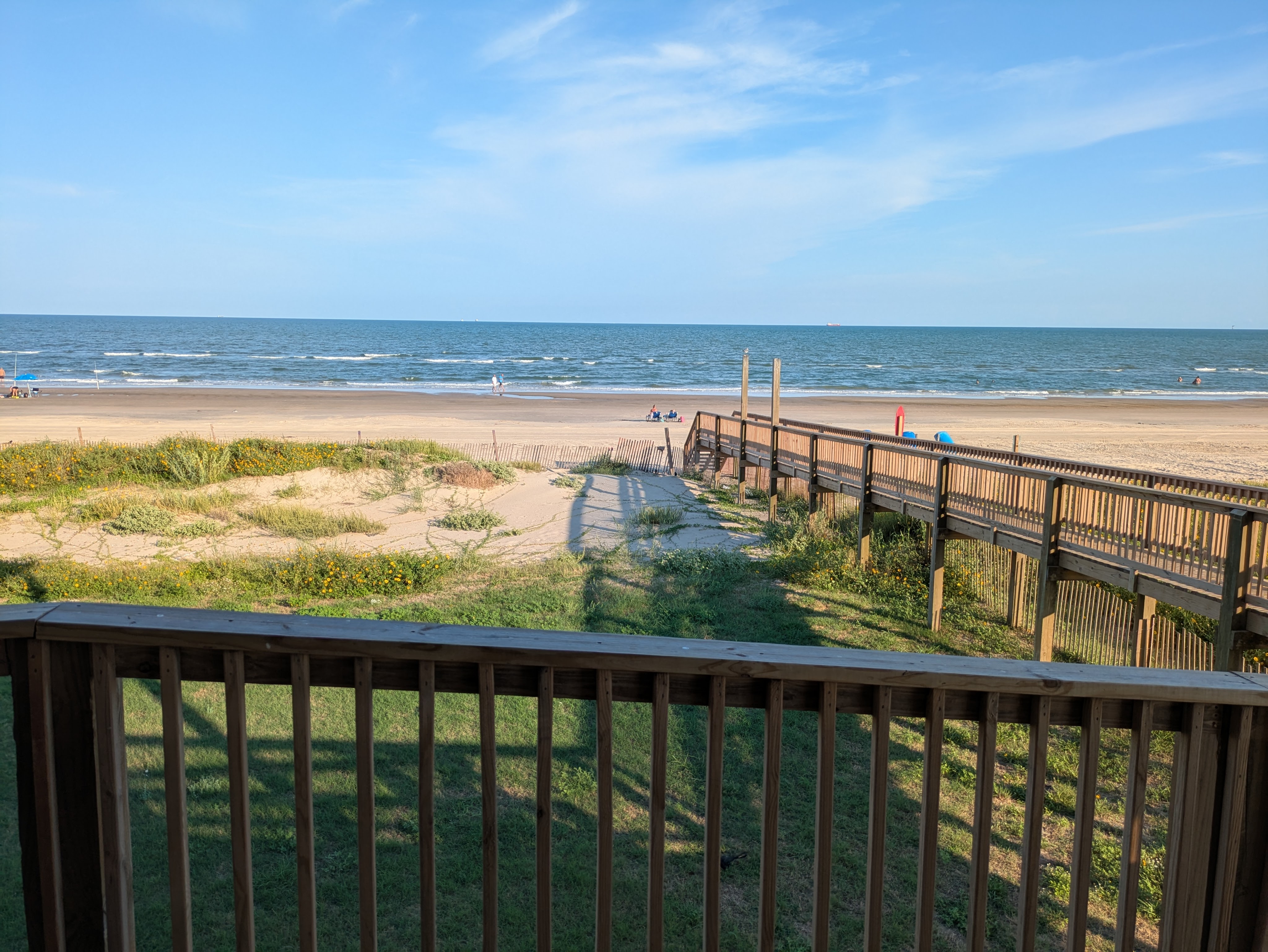 The beach was beautiful as always. Kay grew up in the Rio Grande Valley, a short drive from South Padre Island, where she spent many happy times in her youth. A beach bum at heart, she’s always at home when we stay at the Ocean Village Hotel right on the beach at Surfside.