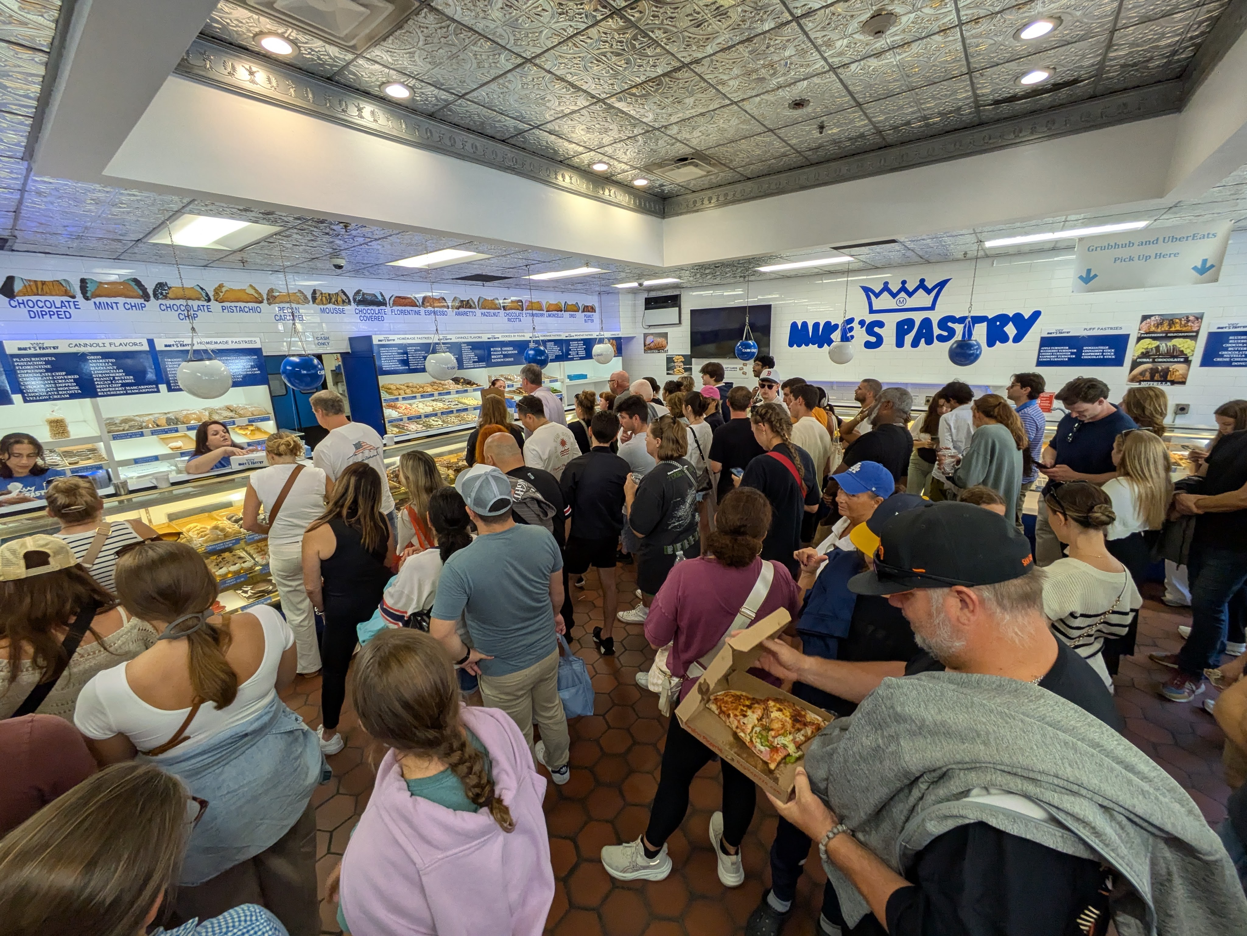 Of course, we got our fill of lobster rolls and crab rolls, neither of which I’d ever experienced. I had no idea what I’ve been missing for 64 years. I also waited through a long but fast-moving line at Mike’s Pastry (after passing on a similarly lengthy line at the same North End location the previous day) so we could try the highly recommended cannolis. I bought – and ate – way too much. But definitely worth the wait.