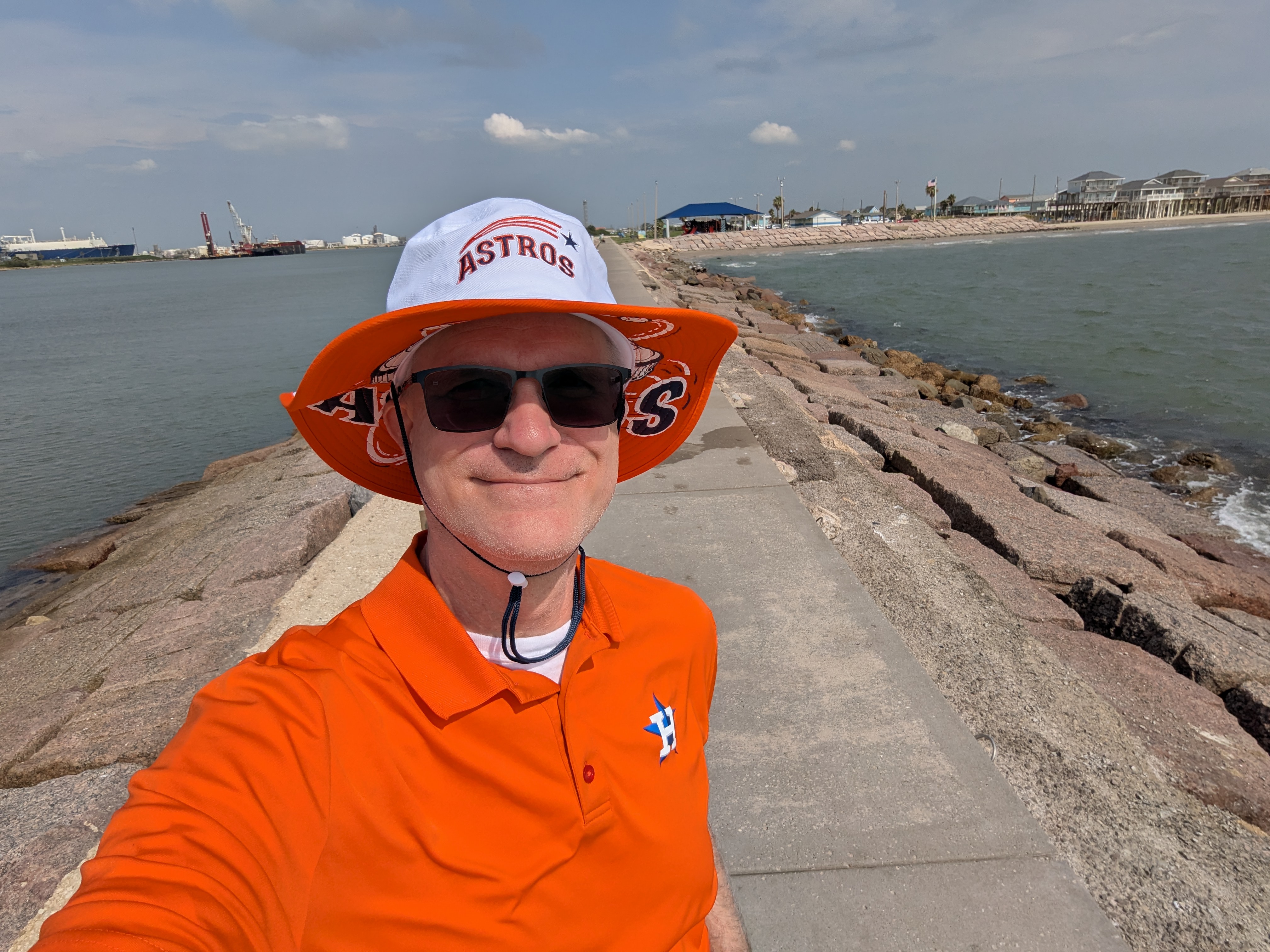 On Sunday, August 17, Kay and I drove to Houston with our 24-year-old Phoebe, who hung out at an arcade while we went to the Astros-Orioles game. After an ugly 12-0 Astros loss, we headed to Surfside, south of Galveston.