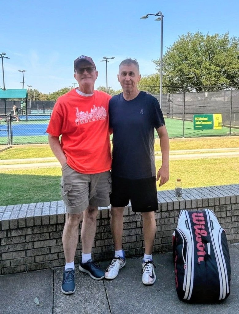 But back to Rick (I’m sure he hasn’t been called Ricky for a long time). That kid is now 59 and I’m 64, and we got together Saturday for a visit at the Arlington Tennis Center, where he was playing in a tournament. We’d seen each other 8 years ago or so, but not since then, even though we don’t live far apart — he and his wife Wendy and college twins Josh and Emily in the Richardson suburb north of Dallas and me and Kay and our college students Phoebe and Alex in SW Arlington.