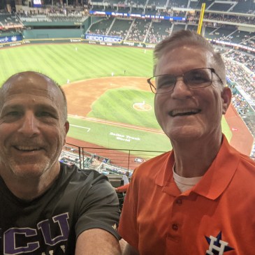 My childhood friend John Reed and I spent three hours at Globe Life Field in Arlington on Monday night watching the team we grew up in Houston cheering for at the Astrodome. The Astros were in town playing the Rangers, and by the time we were leaving just after 10 p.m., the loooong, slow game … More Two childhood friends at the ballpark watching the Astros in a romp — what could be better?